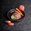 Für dieses köstliche Menü verwenden wir erstklassigen Fisch (Forelle und Saibling) aus heimischer Aufzucht aus der Steiermark kombiniert mit Fischkarkassen, um deinen Vierbeiner passend mit Calcium zu versorgen. Um das Menü mit dem idealen Gemüse und Obstanteil abzurunden, verwenden wir Karotten, Zucchini und Äpfel. Alle Rohstoffe werden in Lebensmittelqualität aus Österreich bezogen und vor Ort produziert. Aufgrund der Sorte Fisch eignet sich dieses Menü perfekt, um deinen Vierbeiner mit Omega-3-Fettsäuren zu versorgen und verleiht ein sanftes glänzendes Fell.