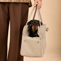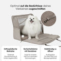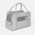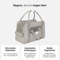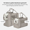 Stilvoller und funktionaler Pet-Carrier aus robustem Polyester mit integrierter Hundeleine, orthopädischer, waschbarer Liegematte und praktischen Details wie Kofferbandhalter und verstellbarem Tragegurt.